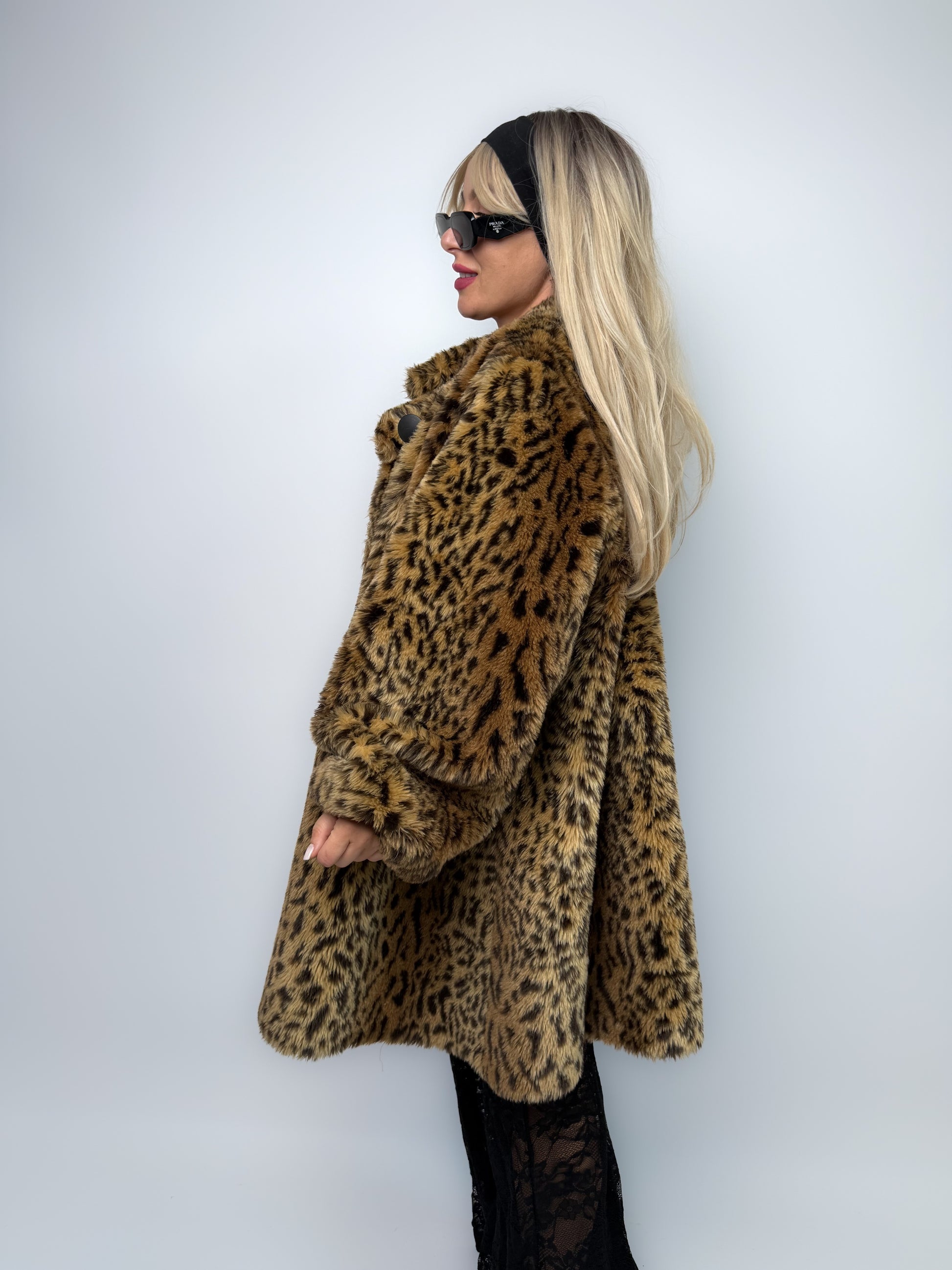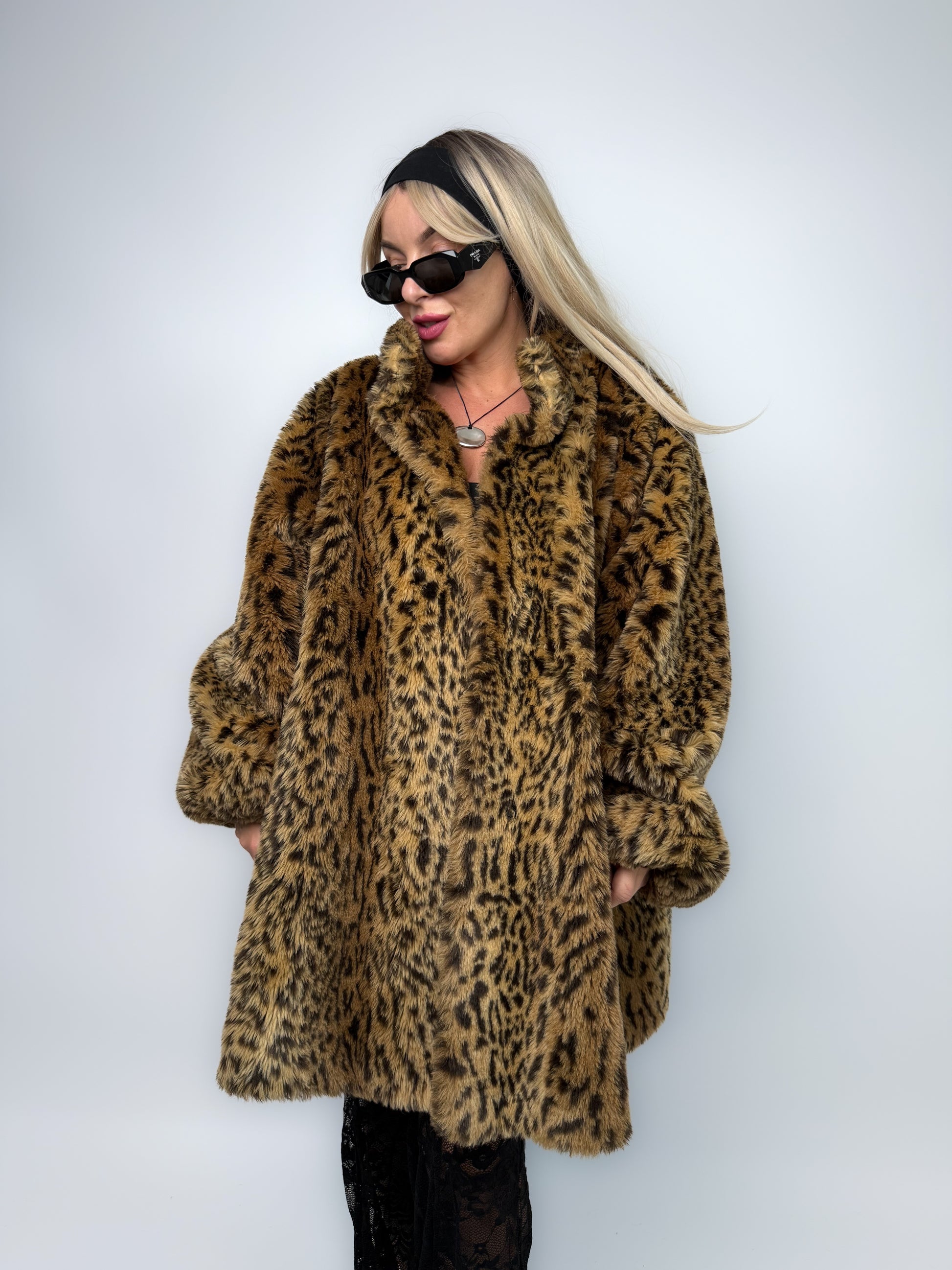 Leopard Print Faux Fur Coat – Vintage 80s Plus Size 2X A-Line Jacket