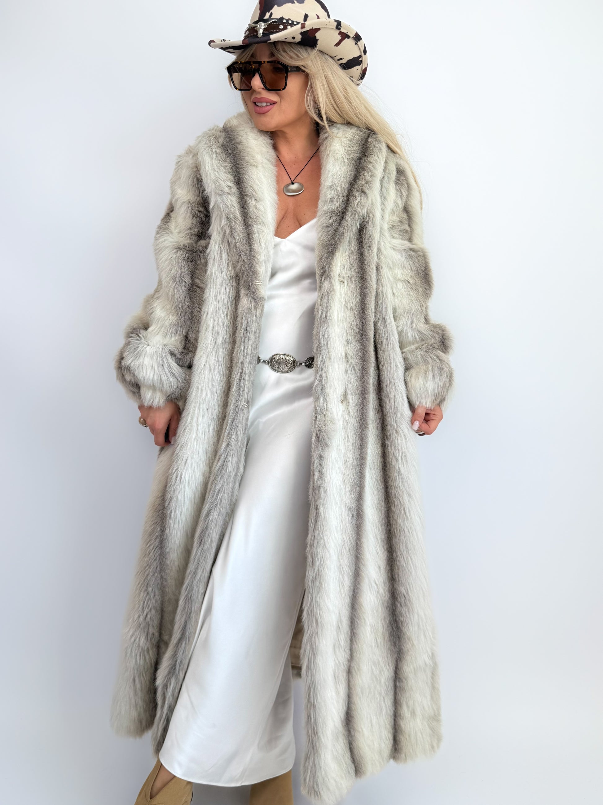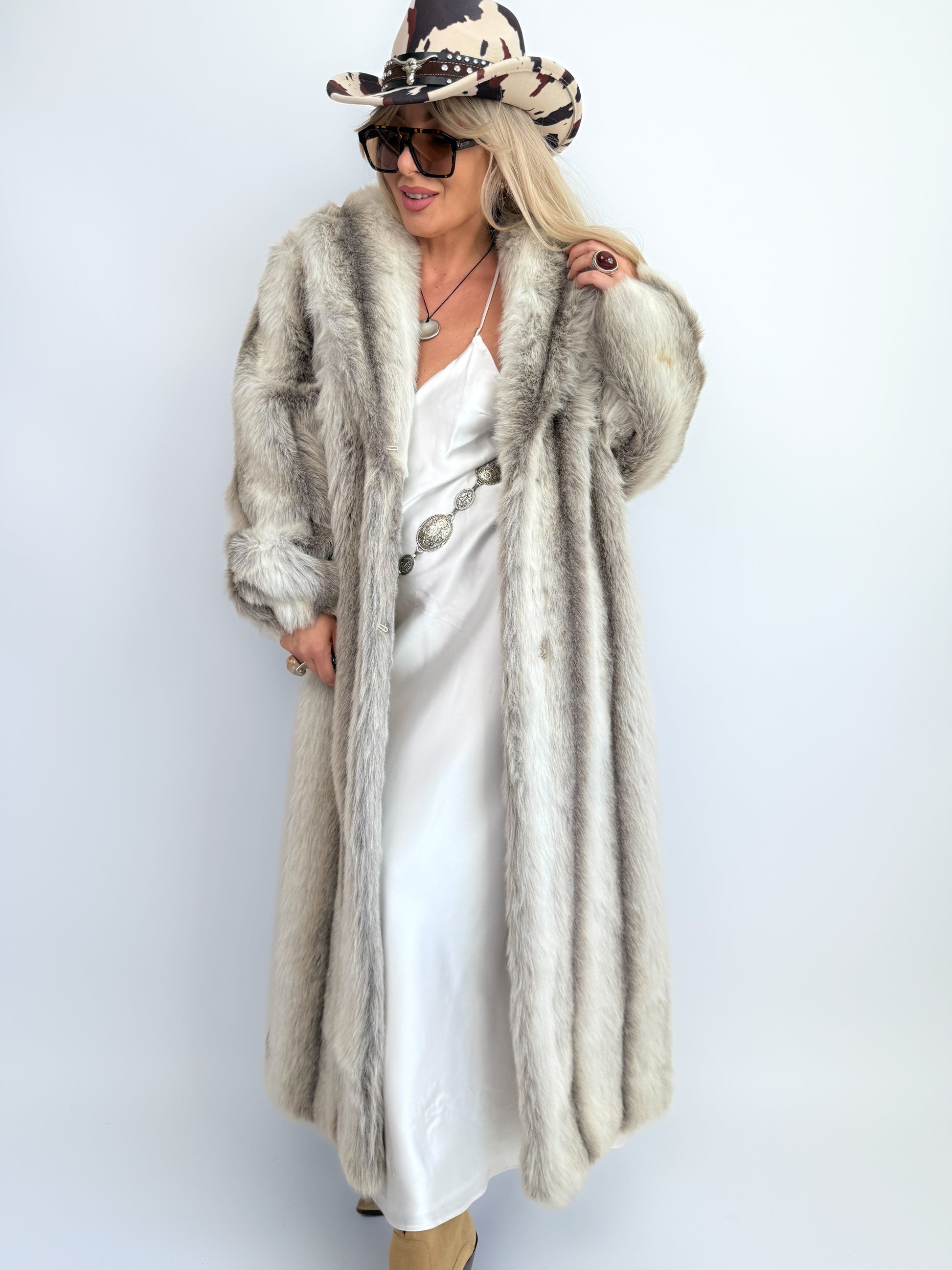 Vintage Cream Ivory Faux Fur Full Length Coat – Mob Wife Style Winter Coat M