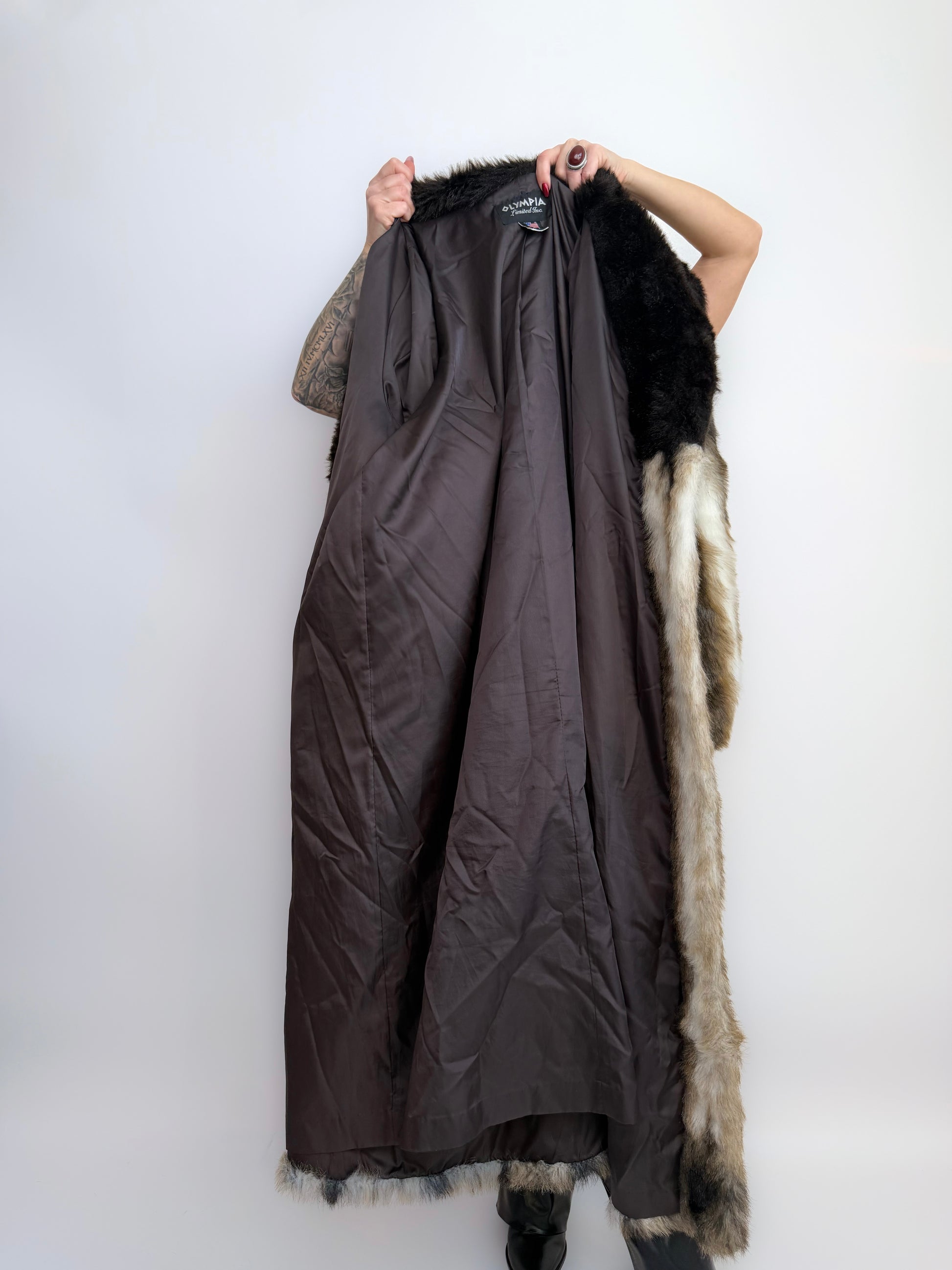 Vintage Ivory Black Long Faux Fur Winter Coat Size XL