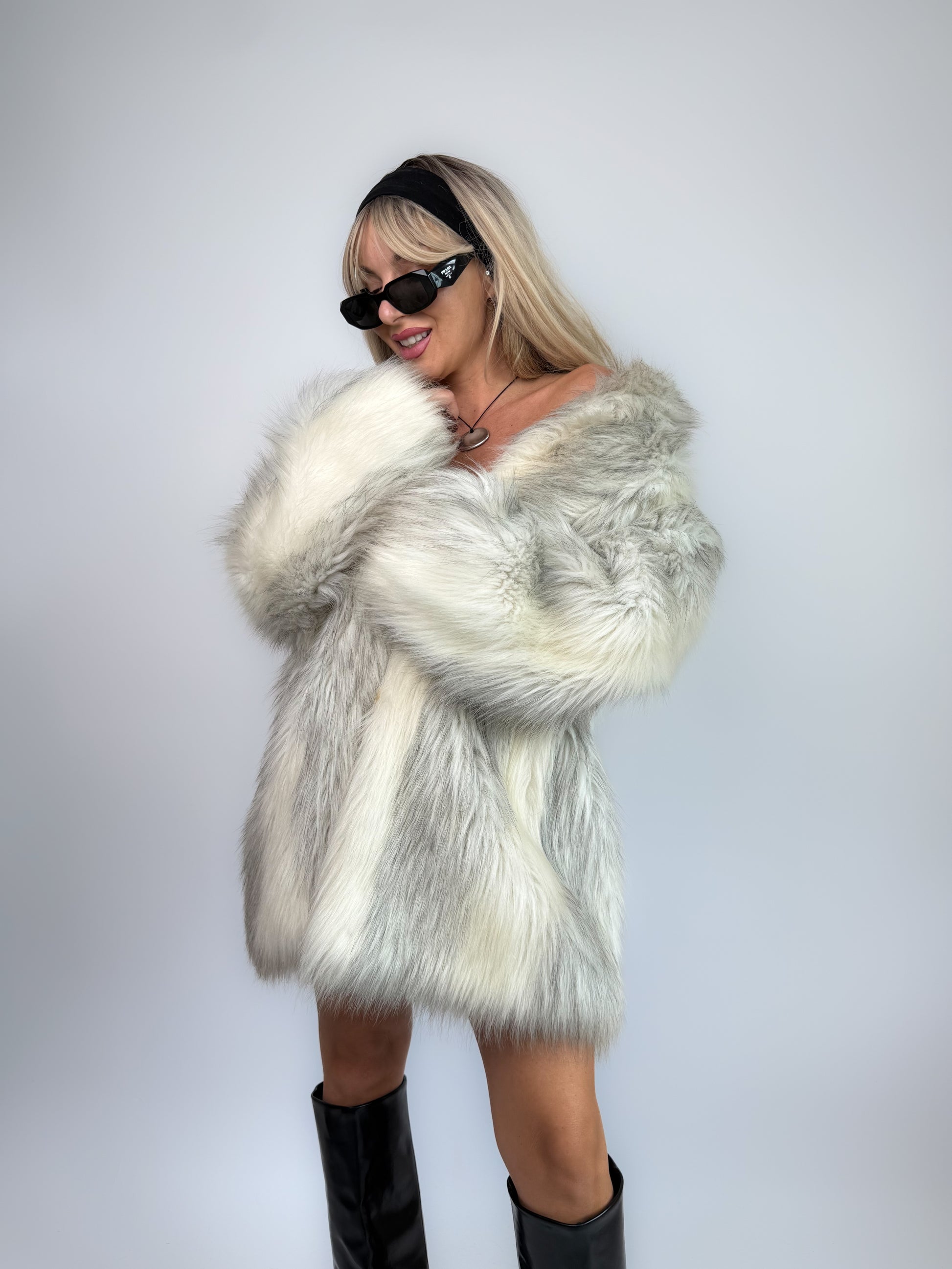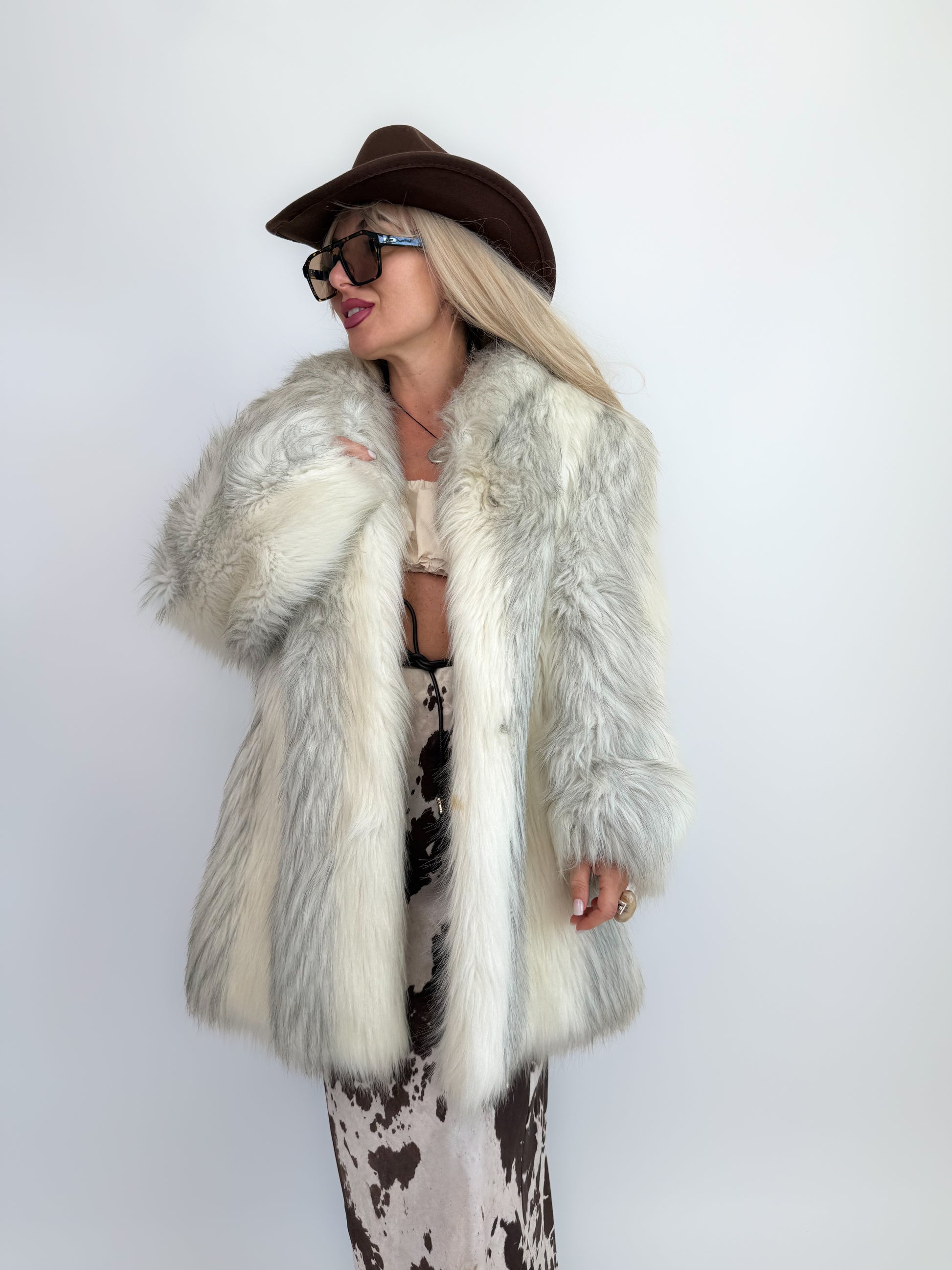 Vintage Ivory Faux Fur Coat – Cream Bridal Winter Festival Mid Length Jacket S-M