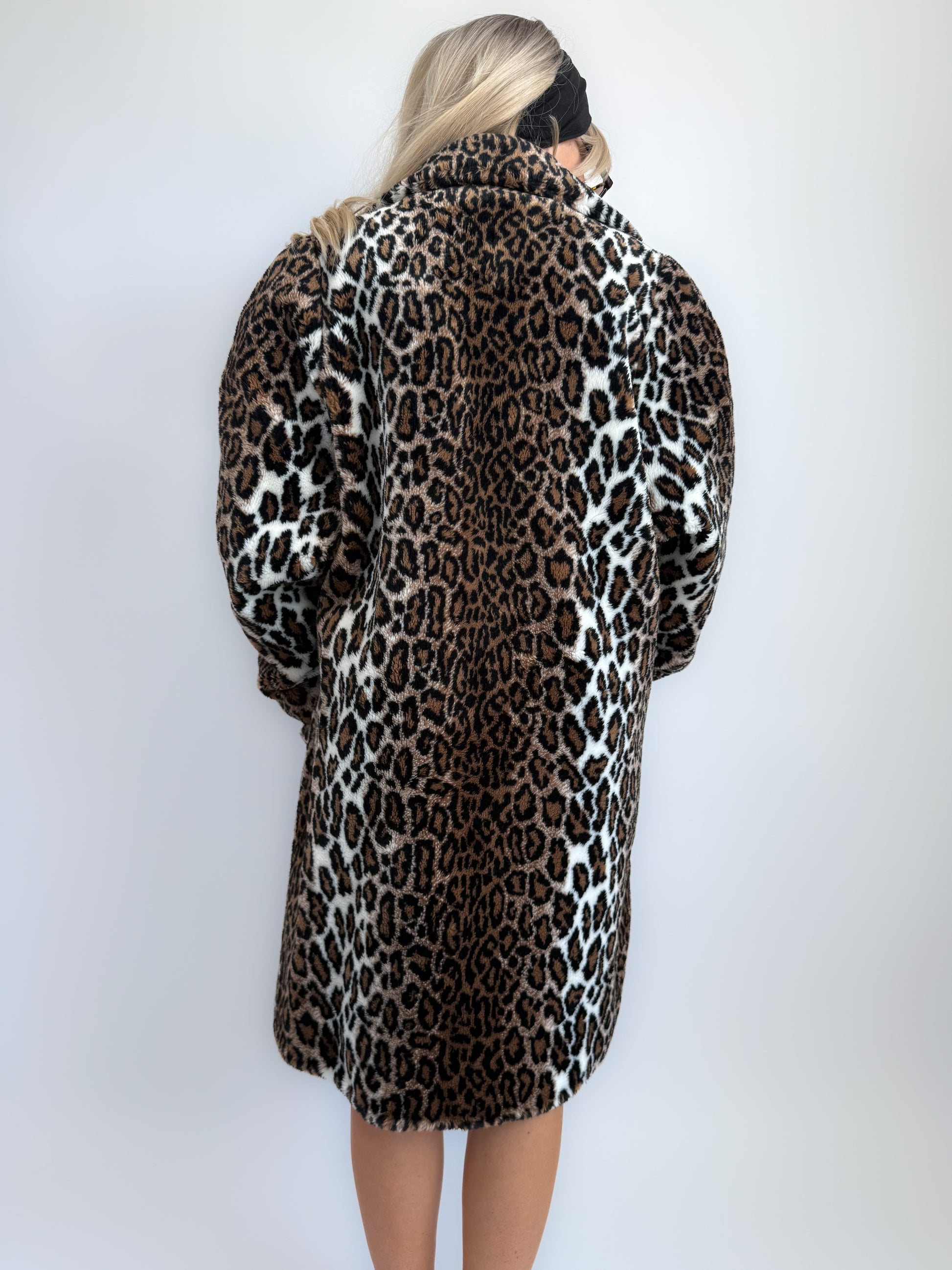 Vintage Leopard Print Faux Fur Coat – 90s Mob Wife Style Animal Print Winter Overcoat Size Large