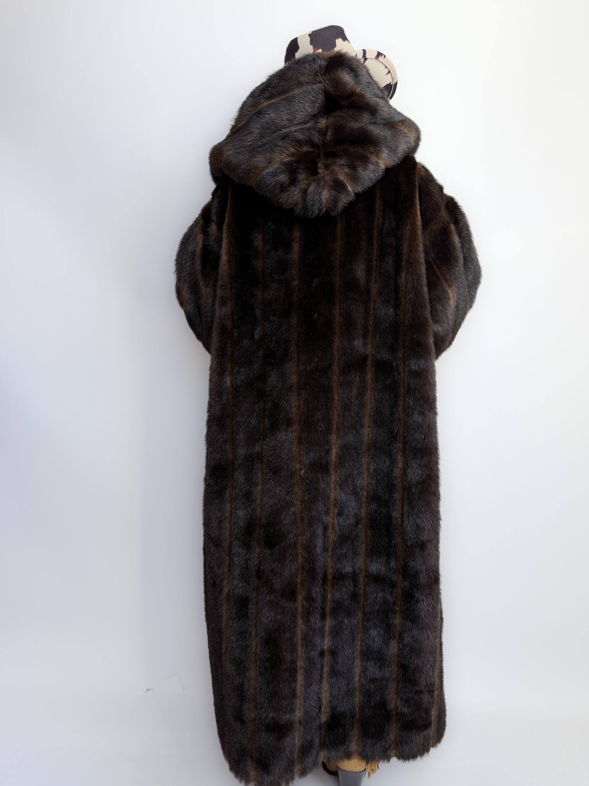 Vintage Long Chocolate Brown Faux Fur Coat with Hood XL-3X