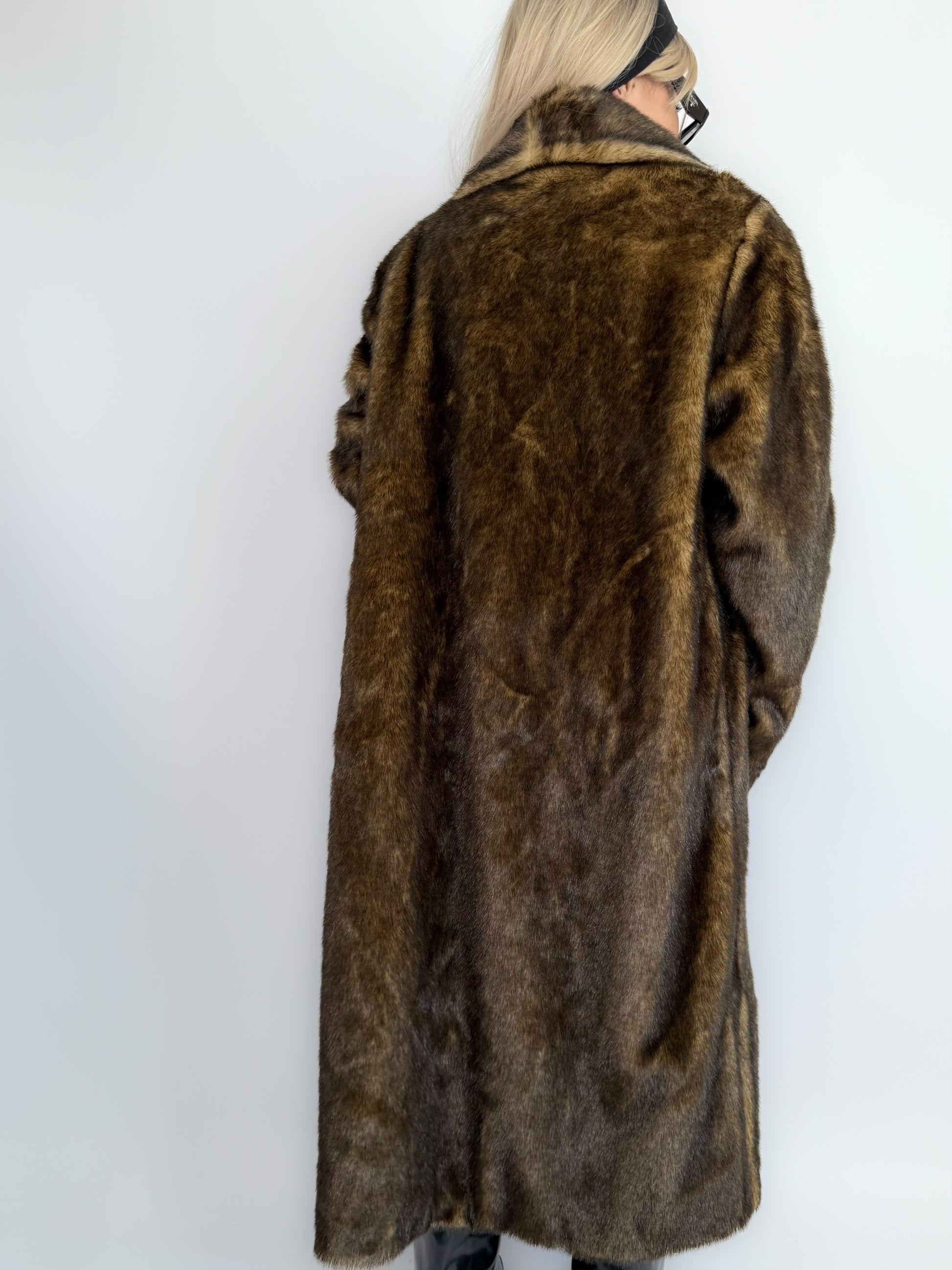 Vintage Brown Faux Mink Full Length Fur Coat - L