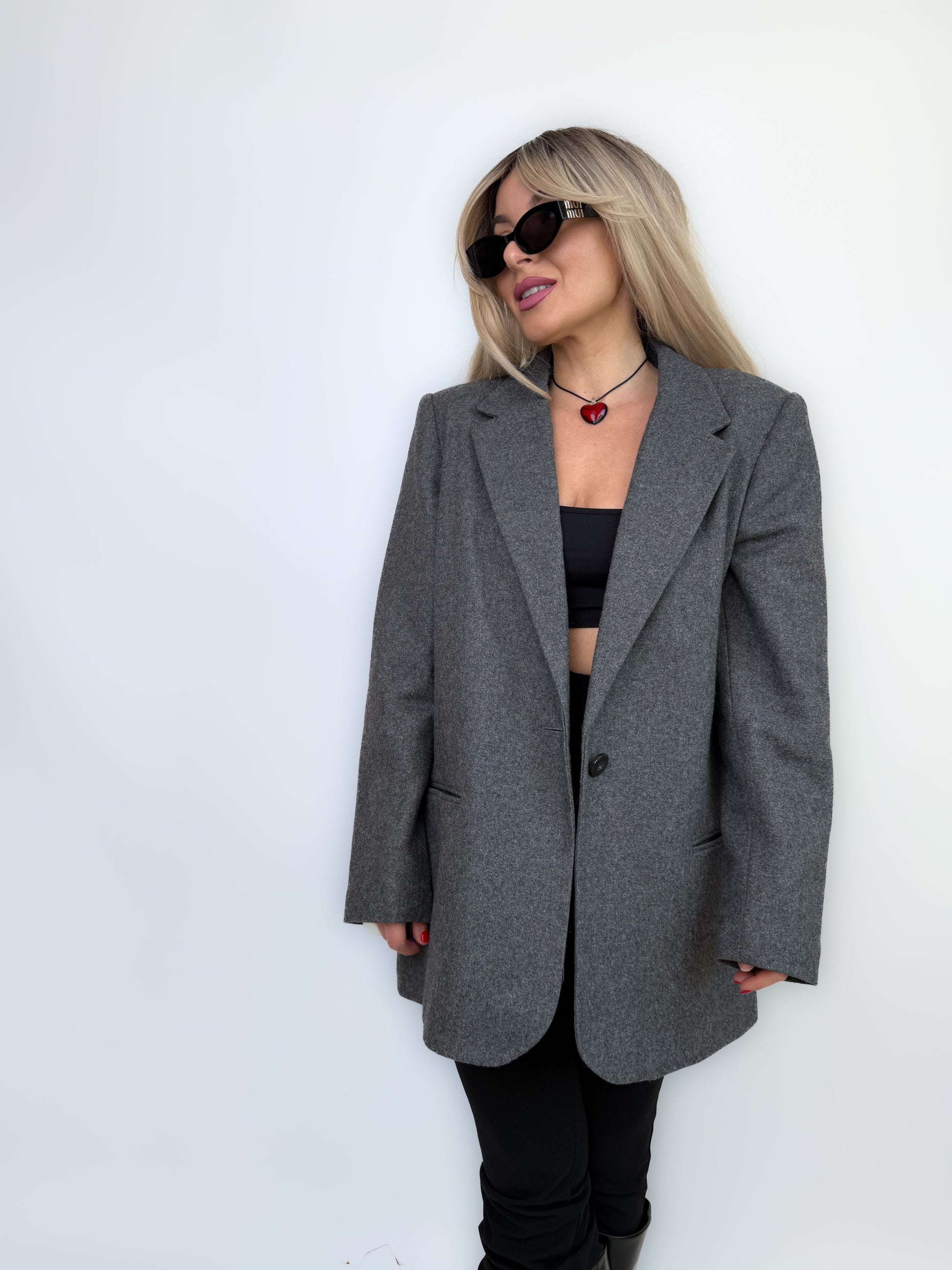 A classic you’ll reach for again and again — this vintage gray wool blazer channels effortless 90s power dressing with a relaxed fit and structured shoulder line. Perfectly tailored for a sleek silhouette yet roomy enough for layering, it’s your go-to piece for coffee meetings, dinner dates, or streetwear styling.