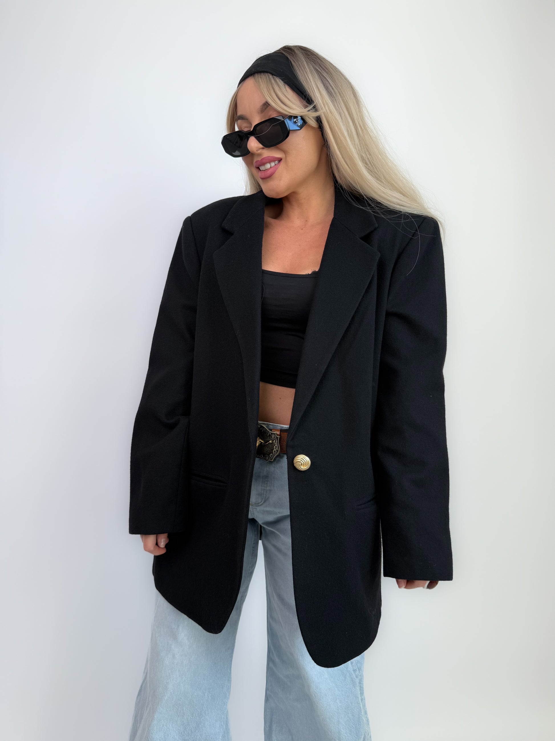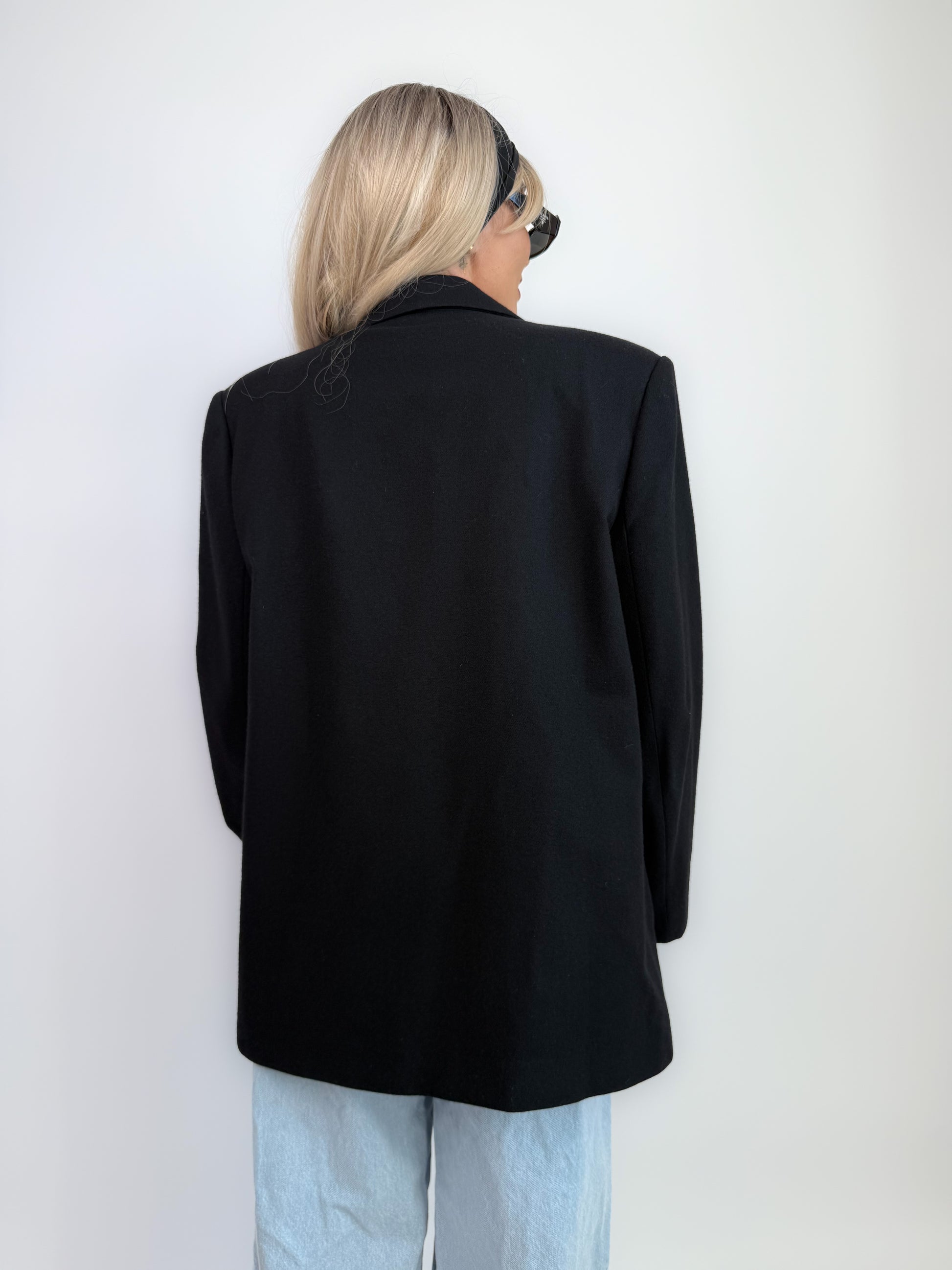 Vintage Oversized Black Single Breasted Wool Blazer Jacket S-M